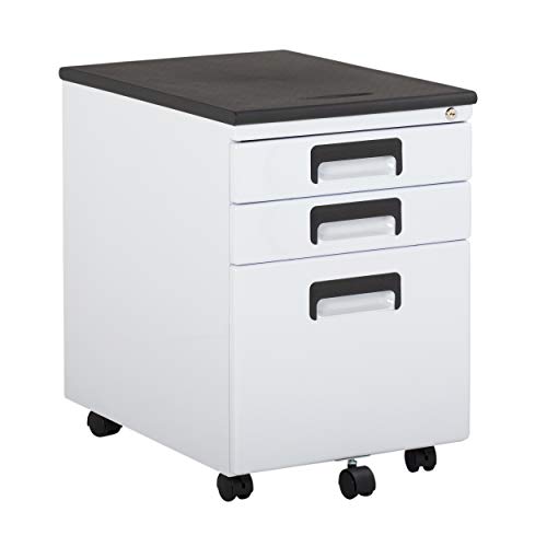 Craft & Hobby Essentials 62004 Metal 3, Vertical, Mobile Filing Cabinet 15.75" W x 22" D, Craft Supply Storage with Locking Drawers in White